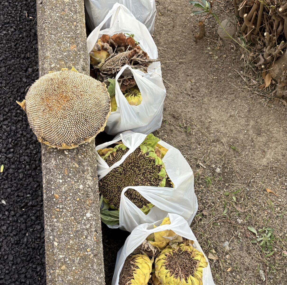 ひまわりのシーズンが終わり種の回収を始めました。